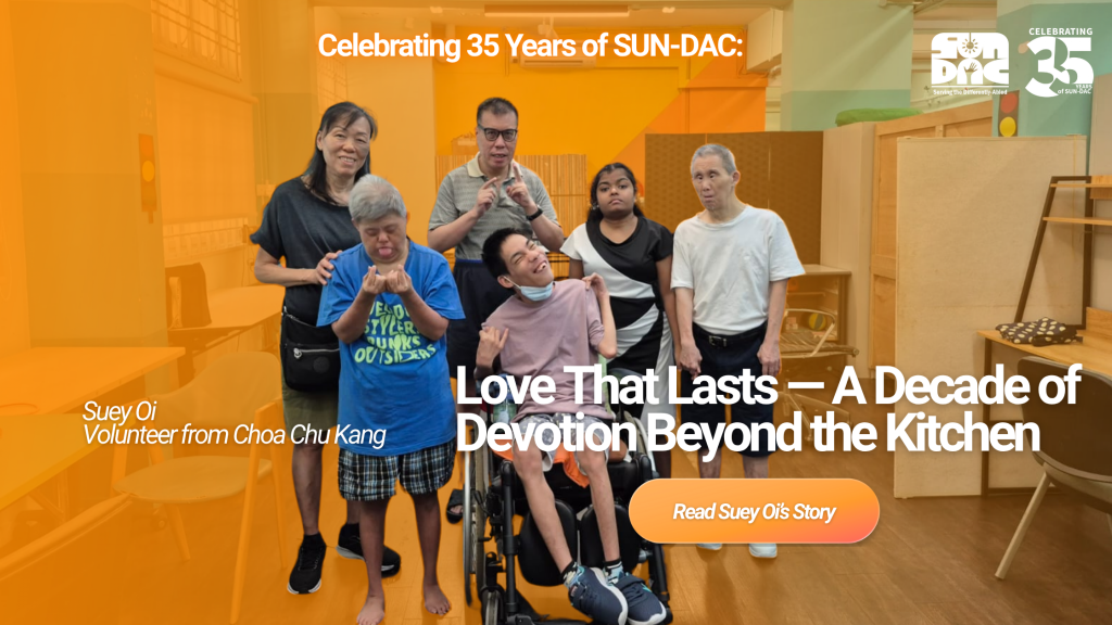 For Suey Oi, the joy lies not in grand gestures, but in seeing the clients happy and engaged through the many meaningful programmes at SUN-DAC. Her hope for the organisation’s 35th year is as heartfelt as her actions: “May SUN-DAC continue to grow and bring happiness to more people.”